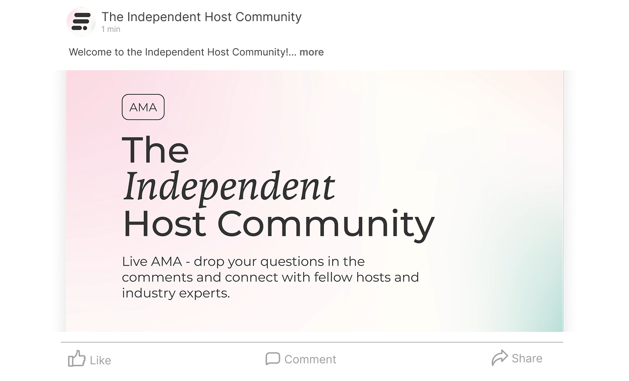 The Independent Host Community is a free, community-driven education hub created to help short-term rental hosts professionalize, scale, and connect.